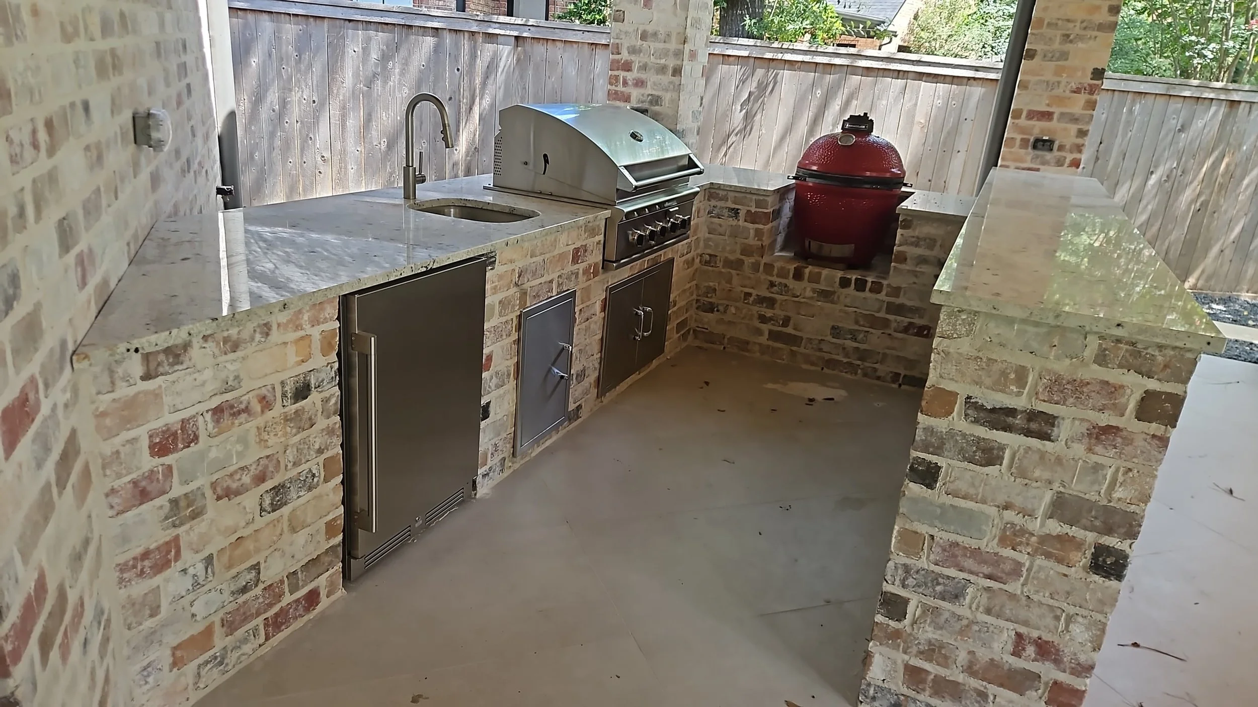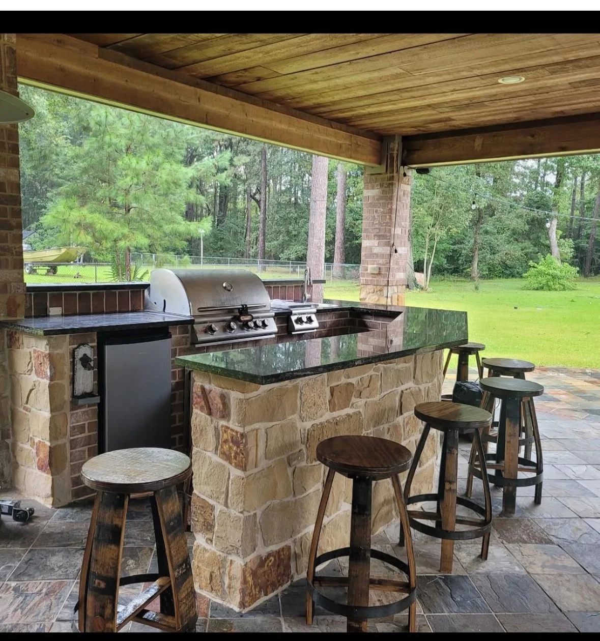 Our masonry team takes pride in using high-quality materials that not only look great but also withstand the elements. Whether you choose stone, brick, or stucco finishes, we’ll ensure your outdoor kitchen blends seamlessly with your home’s exterior and landscaping. Want a rustic natural stone cooking area or a clean, modern stucco kitchen with sleek granite countertops? We can make it happen. We also offer custom backsplashes, lighting, and accent featuresto give your outdoor kitchen that finished, high-end look.
