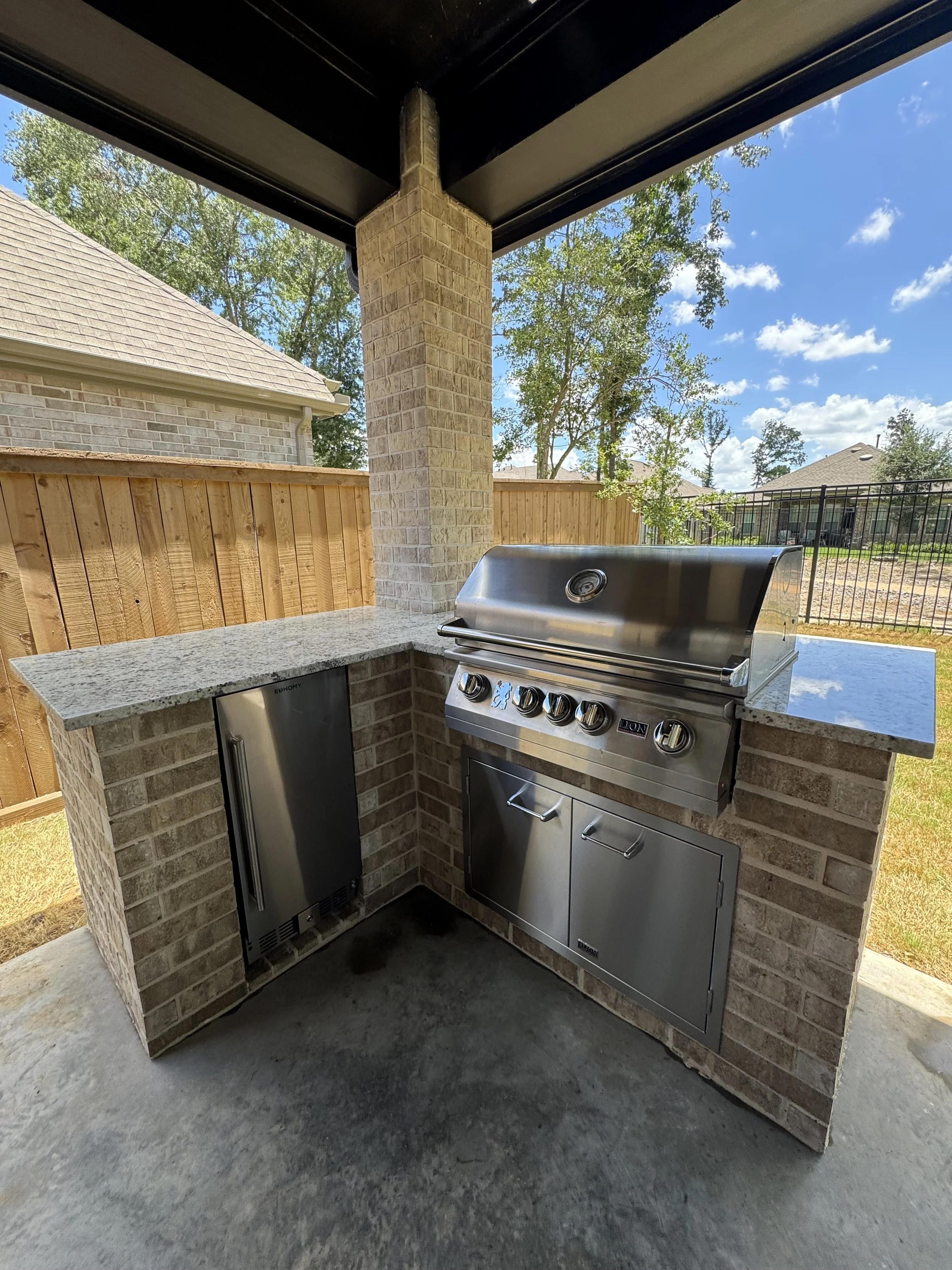 At PASS Contractors, we specialize in designing and building custom outdoor kitchens in Houston, TX and surrounding area. tailored to fit your lifestyle, backyard layout, and personal taste. Whether you’re looking to create a cozy space for family gatherings or a high-end cooking and entertainment area, our expert team delivers masonry-built outdoor kitchens that are as beautiful as they are functional. Using durable materials like brick, natural stone, stucco, and concrete block, we build outdoor kitchens that stand up to Houston’s heat, humidity, and seasonal rain while providing years of enjoyment.